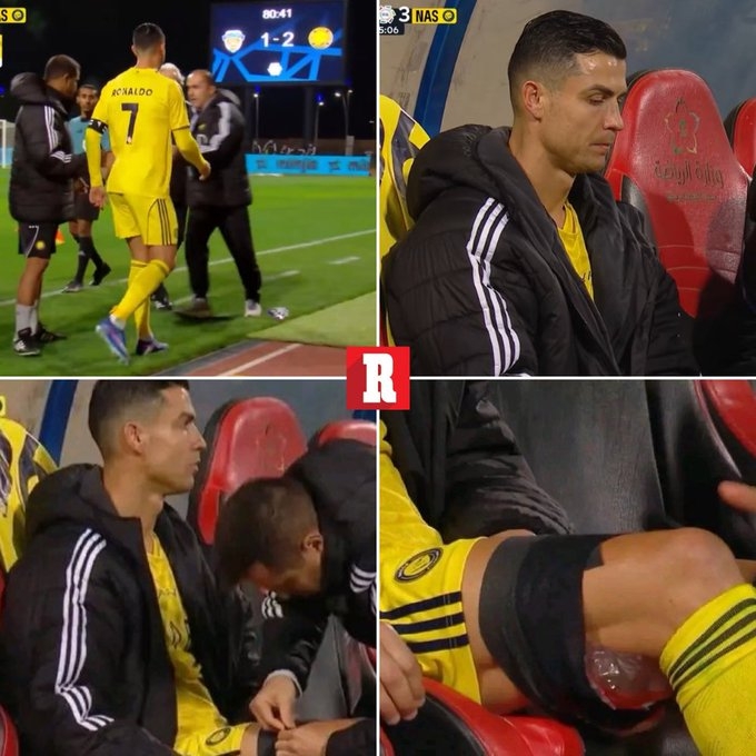 03月01日讯 沙特联第24轮,利雅得胜利客场3-1战胜费哈,本场比赛C罗在第81分钟被换下。C罗被换下的原因是身体不适,有媒体拍到他在替补席接受了冰敷治疗。...
